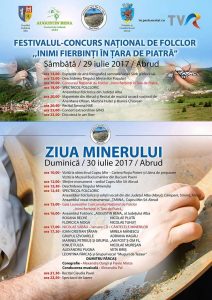 Între 29 și 30 iulie 2017, Abrudul este gazda Festivalului concurs național de folclor „Inimi fierbinți în Țara de Piatră” și a ”Zilei Minerului”