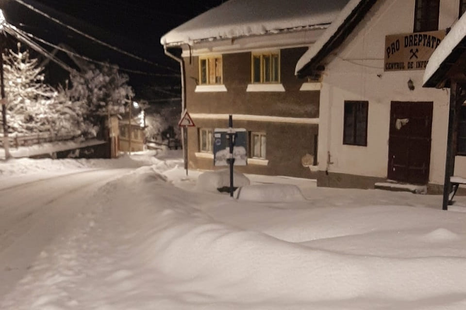 Localitatea Roșia Montană, încremenită sub stratul gros de nea