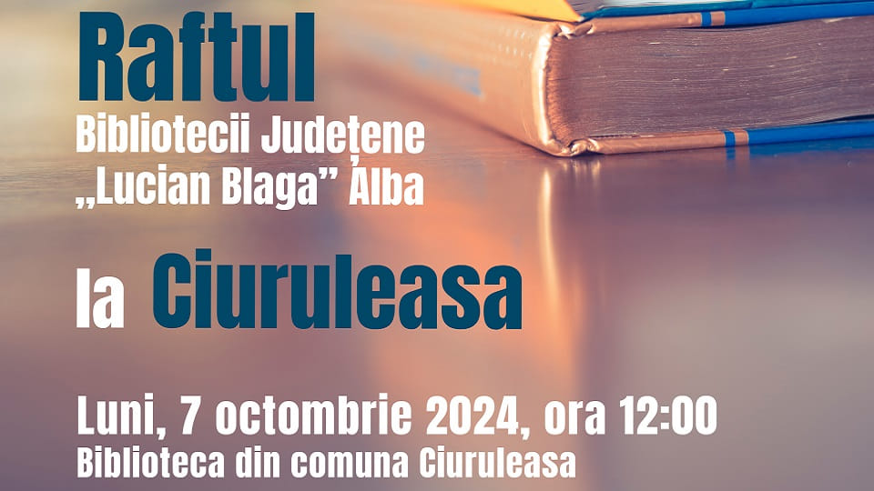 Luni, 7 octombrie 2024, la ora 12:00, Biblioteca Comunală Ciuruleasa va găzdui evenimentul de inaugurare al unui nou Raft al Bibliotecii Județene „Lucian Blaga” în Județul Alba.