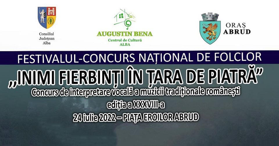Tineri interpreți participă, duminică, 24 iulie 2022, la Abrud, la Festivalul – Concurs Național de Folclor „Inimi fierbinți în Țara de Piatră”, concurs de interpretare vocală a muzicii tradiționale românești. Festivalul a ajuns în acest an la cea de-a XXXVIII-a ediție și se va desfășura în Piața Eroilor din orașul Abrud.
