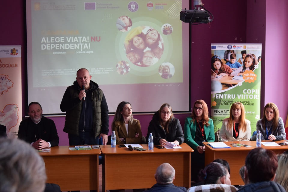 Joi, 2 aprilie 2026, începând cu ora 12.30, la „Școala de Aplicație” din Abrud, a avut loc o nouă întâlnire comunitară din cadrul campaniei „Alege viața! Nu dependența!”, care a reunit peste 80 de participanți – părinți, cadre didactice și oameni ai comunității, alături de reprezentanți ai instituțiilor județene partenere, într-un dialog despre prevenirea dependențelor și despre felul în care intervenția timpurie poate schimba un drum înainte ca acesta să se frângă.