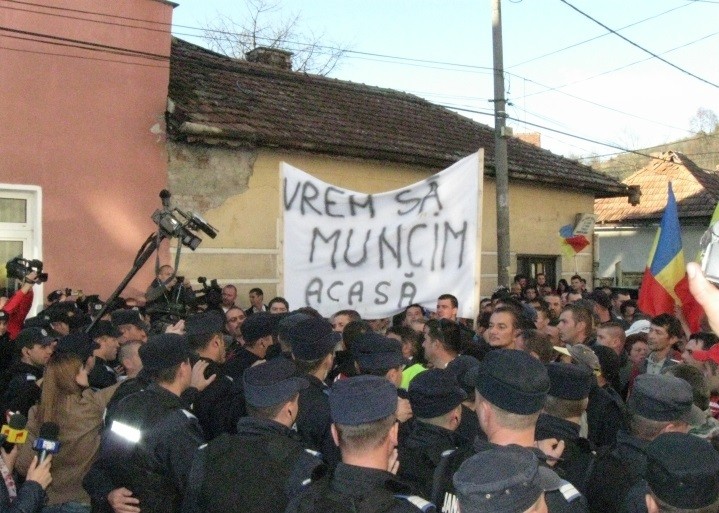 • Ora 17: Atmosfera la Abrud este destul de tensionată consemnându-se și primul mic incident, în timpul marșului pornit de cei aproximativ 300 de susținători ai proiectului minier. Aceștia s-au deplasat către locul în care se află celălalt miting însă au fost deviați și blocați de forțele de ordine pe o stradă lăturalnică după ce au forțat primul cordon de jandarmi.