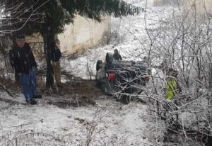 O șoferiță s-a răsturnat cu mașina în afara părții carosabile pe DN 74A, la Gura Roșiei