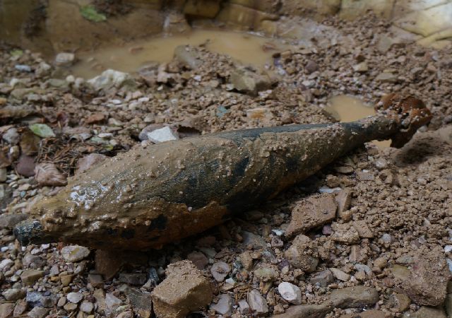 Proiectil neexplodat ridicat de echipa pirotehnică a ISU Alba, de pe strada Republicii din Abrud