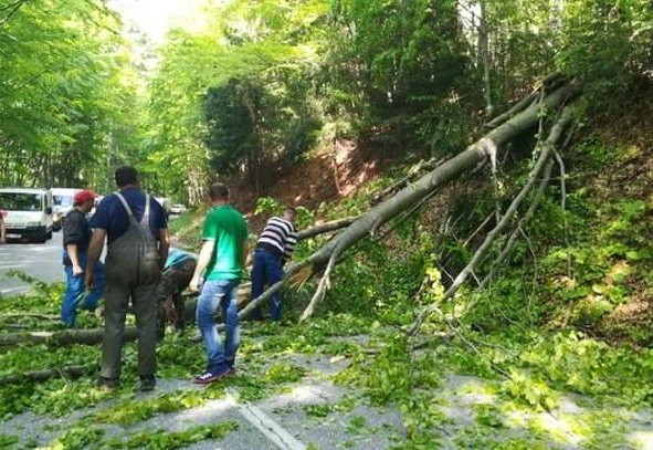„Un arbore foarte înalt, din specia fag, s-a prăbușit, luni după-amiază, pe DN 74, în zona Dealul Mare. Din fericire nu a fost avariat niciun autovehicul care se afla în trafic. Șoseaua a fost curățată în aproximativ 20 de minute, timp în care circulația mașinilor în zonă a fost blocată”, a anunțat ISU Alba.